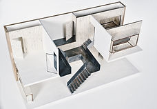The interior is about removing all the facility's into the wall. The remaining space is set aside. The stairs are the center of the patio house and it's also a part of the level base.